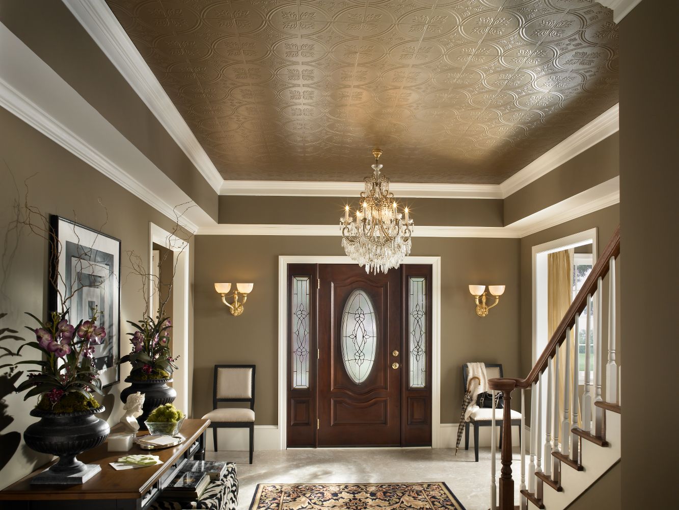 /Ceiling Color - Circles Tin Look Collection Tin/Metal Paintable 12" x 12 ... - For primary living areas, keep the ceiling treatment simple so you don't grow tired of it.